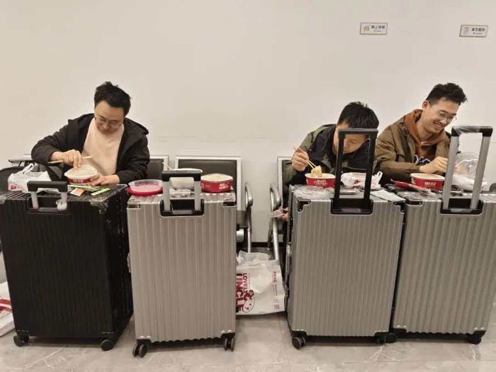 【“果实”浇灌过程”】上午9点,把投标文件送进场后,赵文、尹港港一行人终于抽出空来吃一顿热乎乎的早饭。在一个多月的备战中,团队成员临危不乱,快速解决问题;投标前夜的最后关头,团队成员紧密配合,投标四人小队最终成功登上赴南京投标的火车,虽然拖着的4个行李箱每个都至少30斤,但大家的心里一下轻松了——终于到了交卷的时刻!