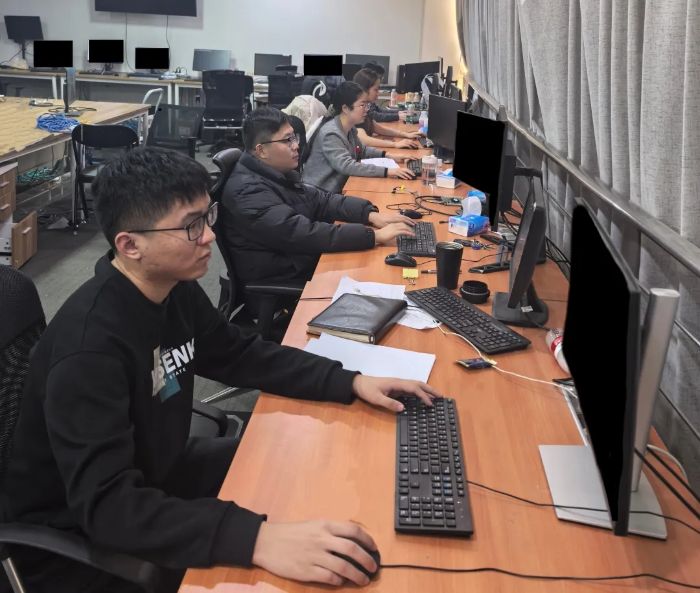 这里没有忙乱和喧嚣,只有沉着和专注。面对交叉重叠的任务节点与极高的精度要求,团队没有半分松懈,而是高效协作、精准研判,在热烈的讨论中不断优化技术方案,每一个专注的神情,都诠释着“决胜年底”的担当与决心。