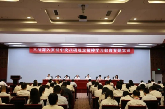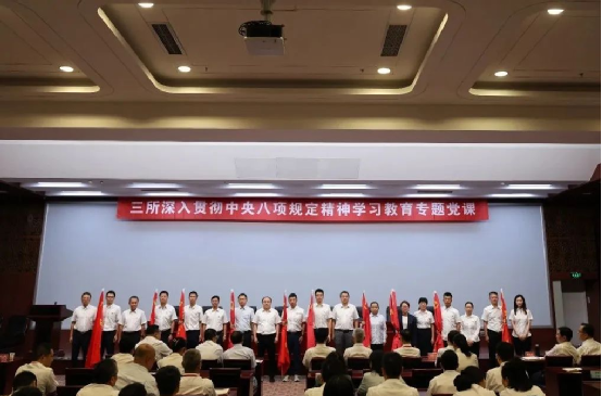 为深入学习贯彻中央八项规定精神,强化作风建设,推进学习教育走深走实,7月16日,3所开展深入贯彻中央八项规定精神学习教育专题党课。集团公司党建工作第一指导组杨牛林副组长及相关成员到会指导。3所党委书记王强讲授学习教育专题党课,3所所长、党委副书记孙俊主持会议。