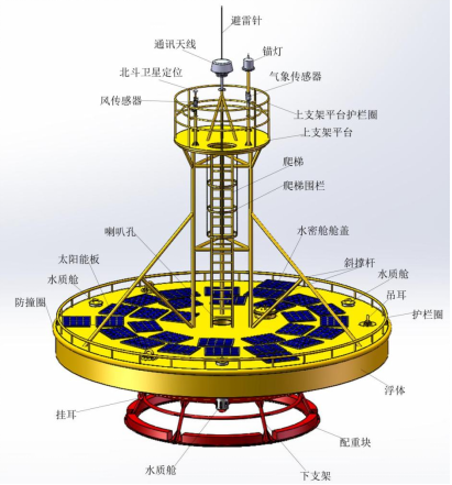 (5)浮标总重: 2 t(不含蓄电池、太阳能板和仪器);