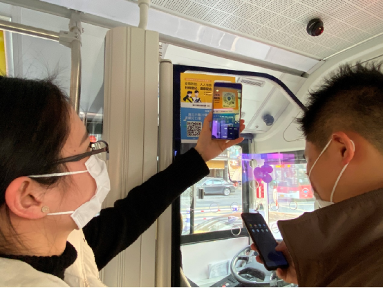 对于辅助公交这个产品,孔娟娟并不陌生,这正是她所在嘉科电子开发,并成功应用与嘉兴公交线路上的一款产品。面对此次疫情,36所防疫复工两手抓,积极与公交公司进行沟通,将辅助公交用户群从校园专线拓展至通勤专线,统一组织有需要的员工乘坐“私人订制”且消毒通风的公交车上下班,每位员工不仅上车前需要出示嘉兴健康码绿码并进行实名登记,而且在乘车过程中必须佩戴口罩且分散乘坐,保持适当的安全距离,最大限度降低员工在日常通勤乘车中交叉感染的风险。