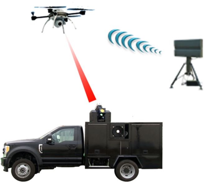 强激光毁伤设备是利用雷达探测提供预警信息,引导跟踪瞄准系统自动对目标进行锁定、实现精确跟踪和瞄准,发射高能激光束,利用高能激光束照射目标,对空中来袭的“低小慢”目标实施激光毁伤,对目标实施精确打击,从而实现对重要活动及重点区域的安保防护作用。