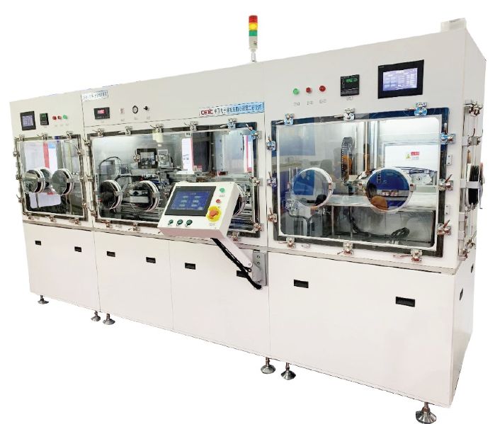 产品简介:全自动封帽机是用于TO 型管座与管帽的焊接设备,其焊接过程在密闭的氮气环境中完成。设备具有智能化、效率高、兼容性强等优点,设备的工艺配方管理、报警日志查询、设备运行时间统计等软件功能,为用户设备操作,工艺品种切换提供了便捷。大容量烘箱、大容量传递仓与手套箱无缝连接有效降低了成品水汽含量,同时保证了设备产能最大化。