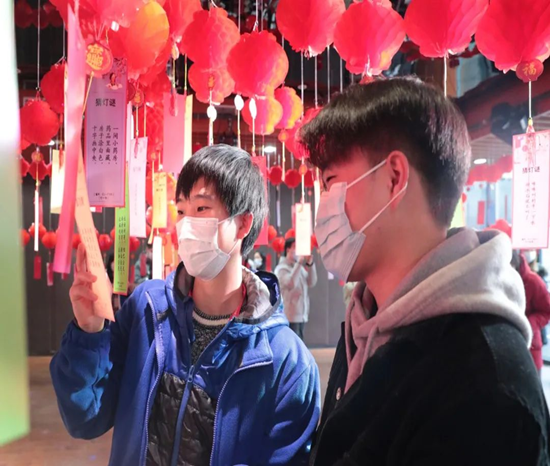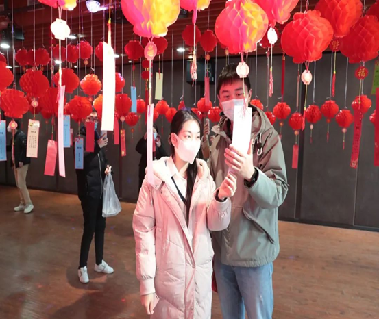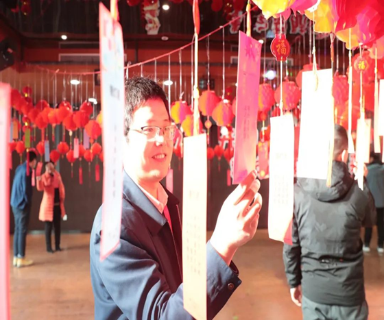 红红火火的灯笼和灯谜交相辉映,大家沉浸在一片欢乐、享和、喜庆的节日氛围中,不一会儿,悬挂的五百余条灯谜就被相继“破译”。