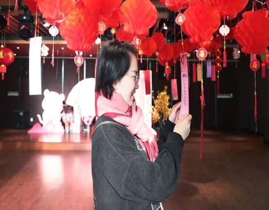 猜灯谜活动现场一张张趣味横生的谜面纸条随灯笼一个个张贴悬挂着,一片红火的景象。活动刚刚拉开序幕,职工们就被内容丰富、趣味十足的谜语深深吸引,或独自思索,或低声商议,或三五成群“头脑风暴”,大家在活动中增长知识、享受快乐,现场欢声笑语不断。