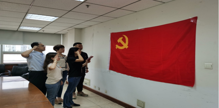 2021年7月,中国共产党成立100周年,支部组织部门所有党员同志重温入党誓词。与会党员面向党旗,用铮铮誓言表达对党的事业的忠诚和为共产主义奋斗终身的坚定信念,立志用更严格的标准要求自己,争当优秀共产党员,通过不懈的努力为党的旗帜增光添彩。